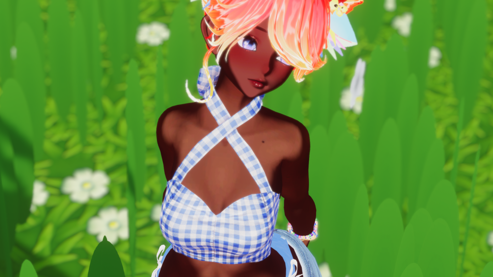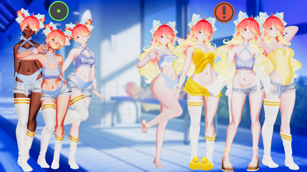 Body: Zinpia | Head: Sivka | VRCFT: Jerry | Bangs: Saikura | Buns: BakaRosie | Bikini Bottoms: YamuVR | Socks: Nessy! | Bracelets: YamuVR | Ears + Ducks: Enzie | Bikini: YamuVR |