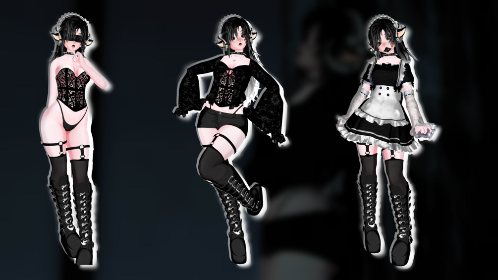Body - Minki | Head - Sivka | Gothic Fans - Handee_Bee | Goth Ihop Card - alwaysyouramanda | Ears + Tail - XEROZU | Horns - Skittie | Maid stuff - YamuVR | Blindfold - cherriuwu | Choker - VinuzhkA |Hair - Deimos | Necklace - TheThiccWitch | Corset - Amarnath | Stockings - Mutt | Top - BubbleBunny | Boots - Toxily | Shorts - Pursu